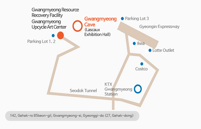 - GPS: Enter Gwangmyeong Cave or Gwangmyeong Resource Recovery Facility (Parking Lot 1 or 2); Enter Gwangmyeong Cave Public Parking Lot 3 (Back Gate of Gwangmyeong Cave)