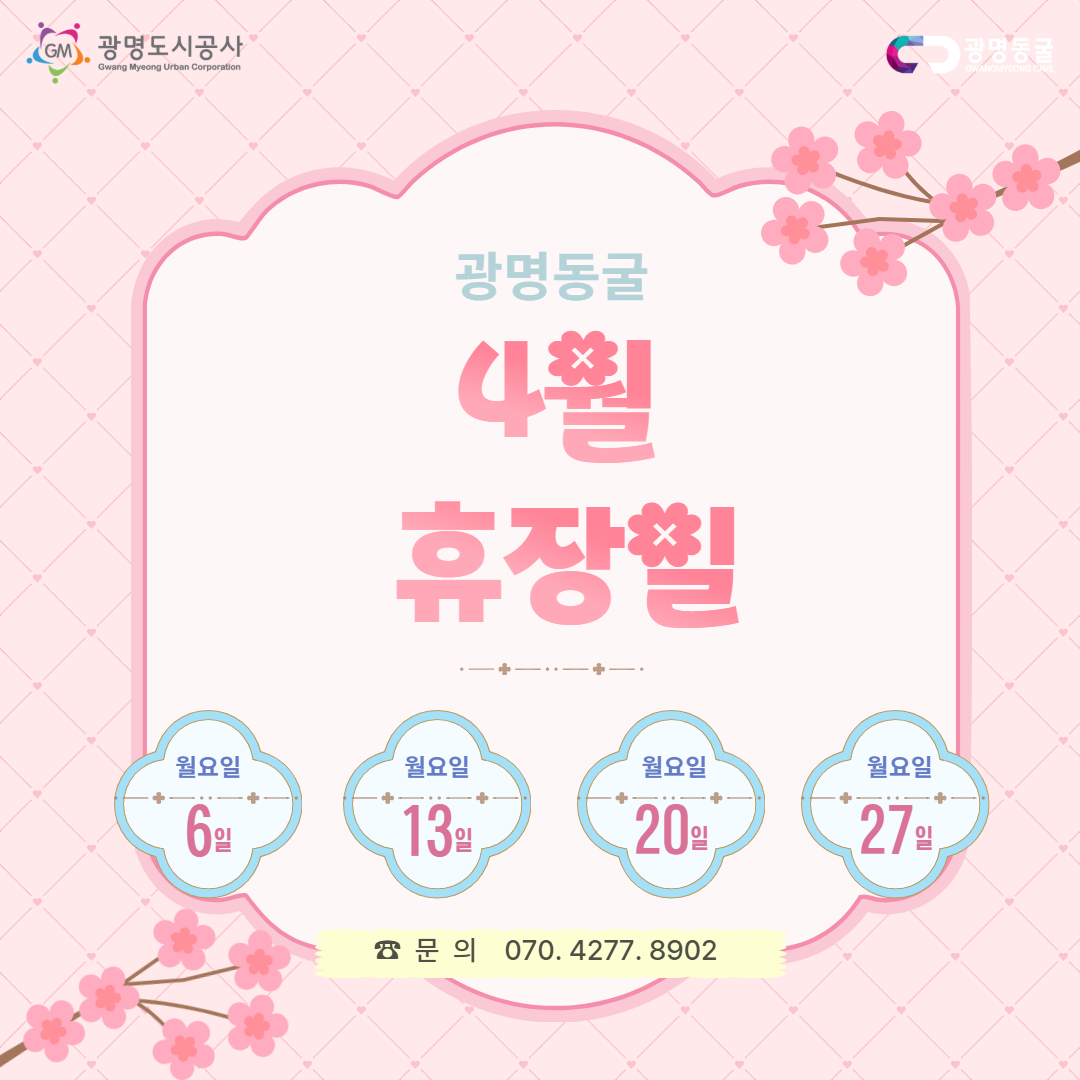 광명동굴 2026년 4월 6일, 13일, 20일, 27일은 휴장입니다.