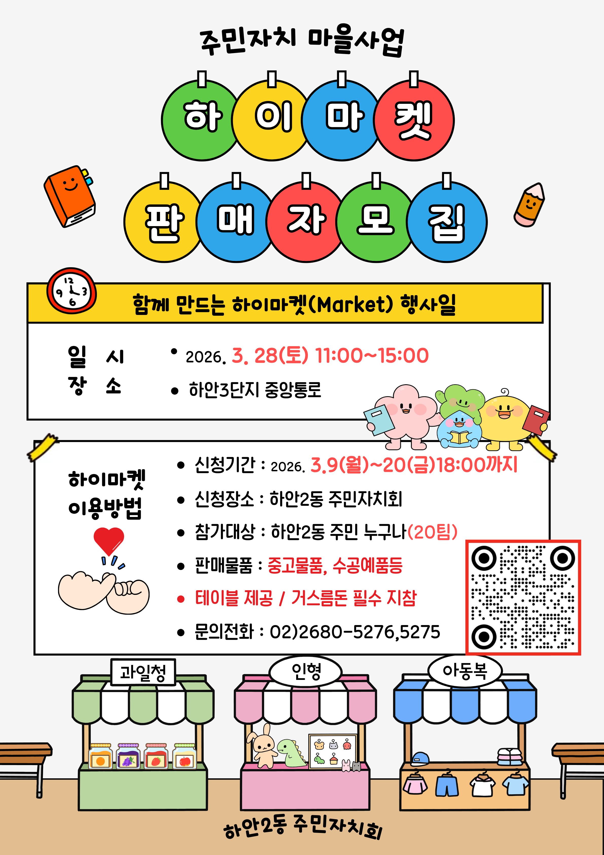 2026년 하안2동 주민자치 마을사업 '함께 만드는 하이마켓' 참가자를 모집합니다.