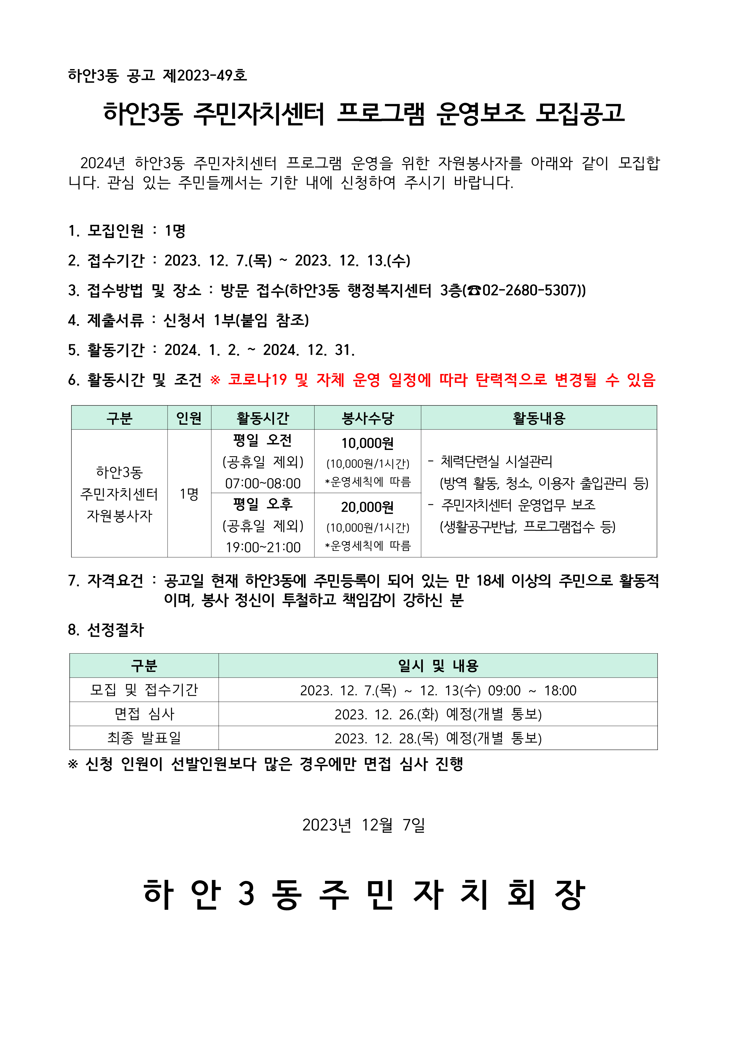 2024년 하안3동 주민자치센터 자원봉사자 공고(서식 포함).hwp