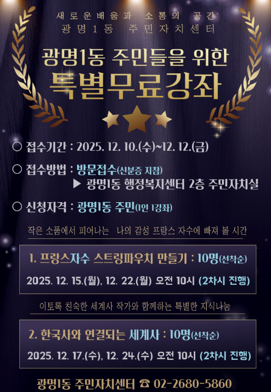 광명1동 주민들을 위한 특별 무료 강좌 모집(We Start!!!)