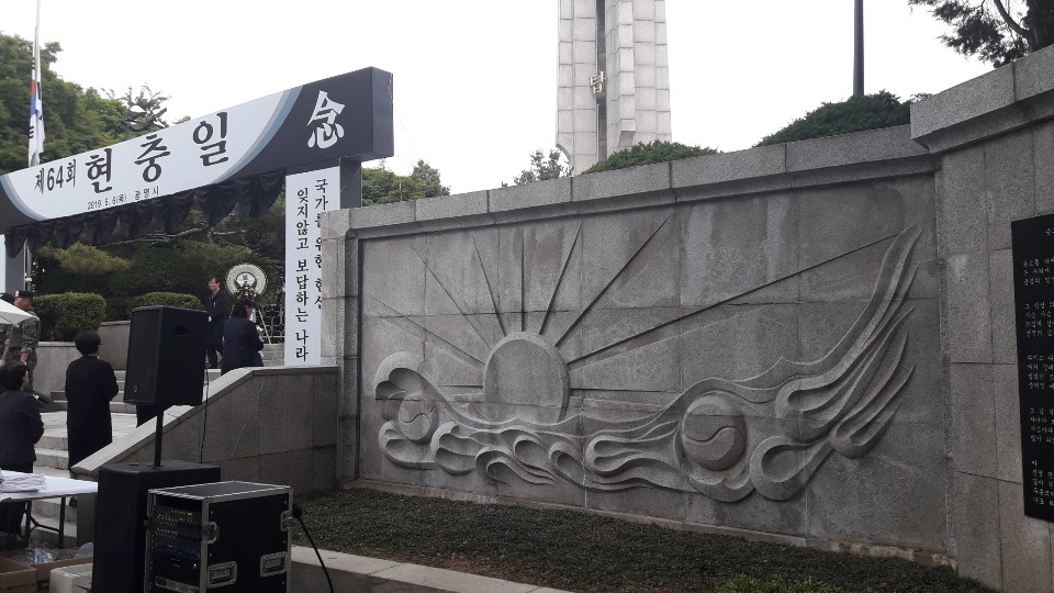 찬성의견 : 현충탑 조형물이 일본의 제국주의를 상징하는 욱일승천기가 연상되어 조형물을 교체해야 한다.
