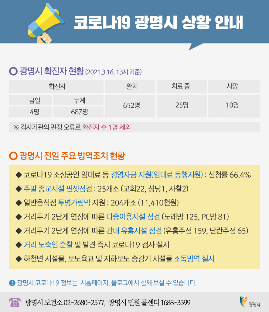 코로나19 광명시683~684번째 확진자 발생 안내 3월 16일(화)