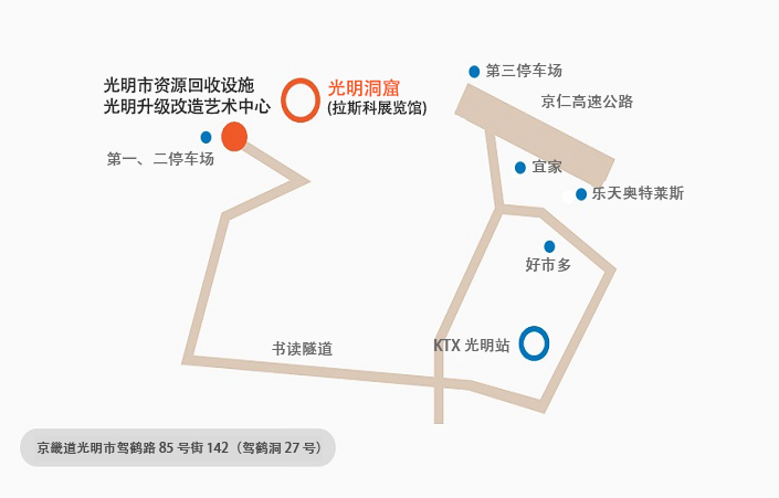 - 导航 : 搜索光明洞窟、光明市资源回收设施(第一、二停车场),或搜索光明洞窟第三公共停车场(光明洞窟后门)