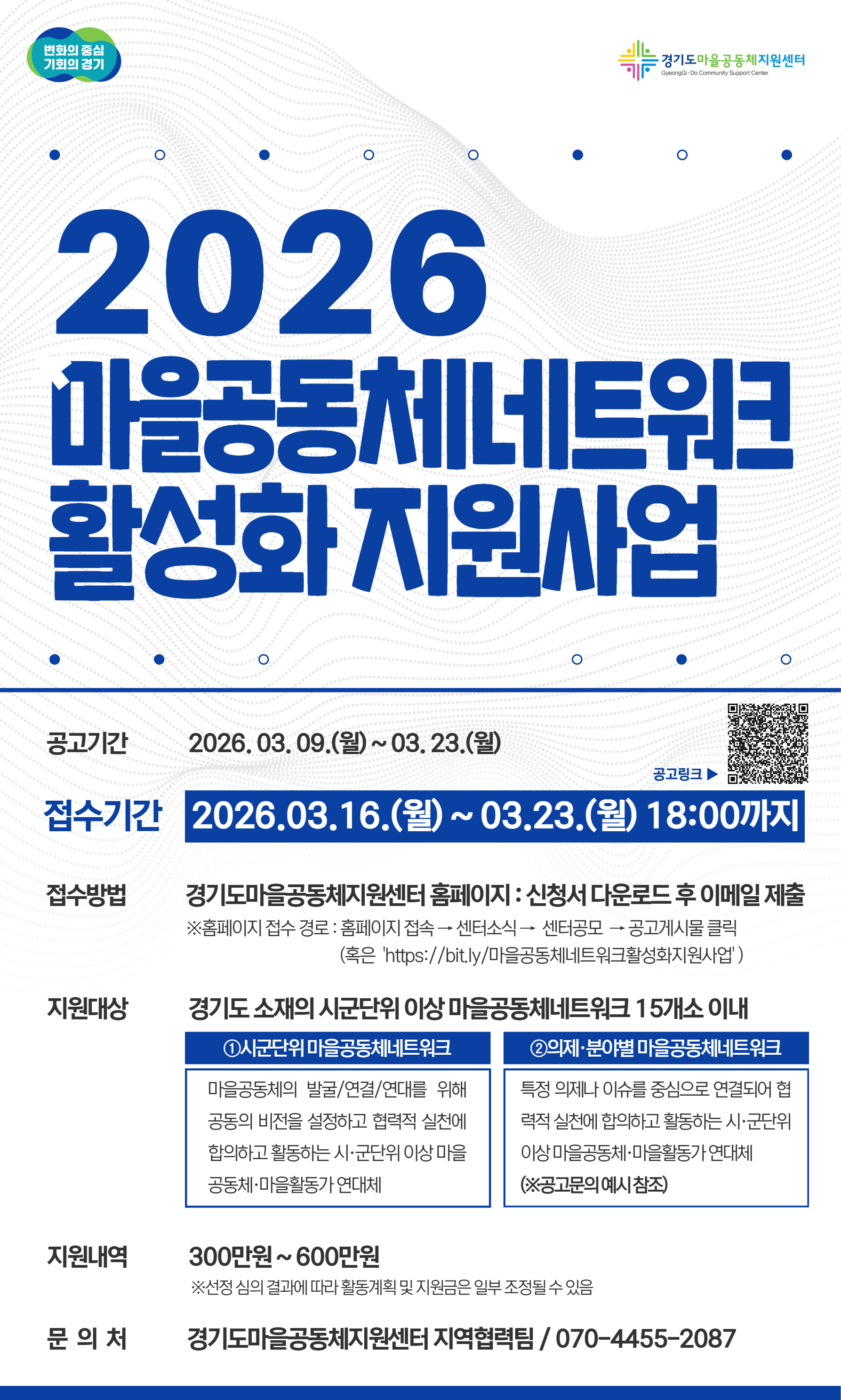 | (경기도)2026년 마을공동체네트워크 활성화 지원사업 공고 | |||