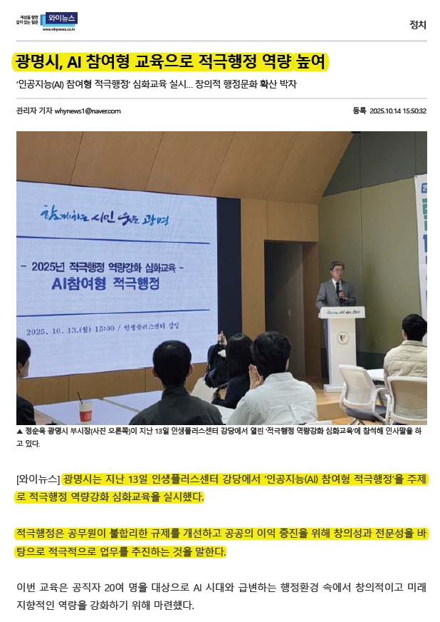 광명시, AI 참여형 적극행정 심화교육 실시