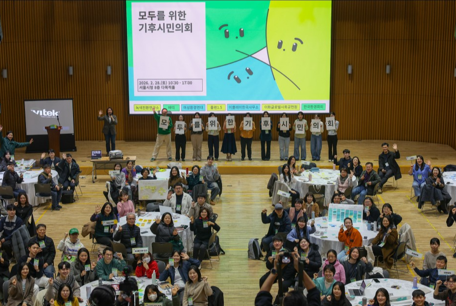 지난 2월 28일 서울시청에서 ‘모두를 위한 기후시민의회’가 개최되었습니다. 시민 100여 명과 함께 포용적이고, 민주적이며, 영향력 있는 기후 시민 거버넌스 구축 에 대한 숙의 토론을 진행했습니다. 특히 정부가 올해 기후시민회의 출범을 예고한 가운데, 시민의 의견이 실질적으로 정책에 반영되는 거버넌스를 만들기 위한 방향과 조건을 모색하는 뜻깊은 논의의 장이 되었습니다.