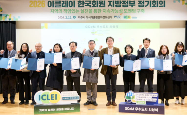 지난 2월 11일, 파주시 아시아출판문화정보센터에서 '2026 이클레이 한국회원 지방정부 정기회의'가 개최되었습니다. ‘지역의 책임있는 실천을 통한 지속가능성 모멘텀 구축'을 주제로 지속가능한 도시를 위한 각 지방정부의 전략과 이클레이와의 협력 방안을 논의했습니다. 지방정부 29곳, 협력 기관 5곳에서 약 200명이 참석한 정기회의를 소개합니다!